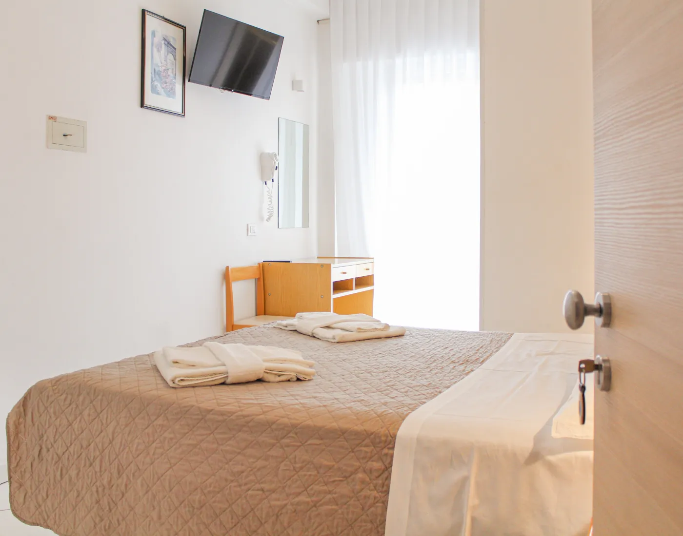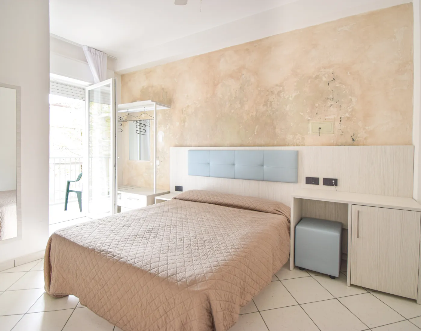 Matrimoniale StandardQueste camere sono disponibili con finestra oppure con balcone. Sono semplici e funzionali, con bagno privato, box doccia e wifi. |