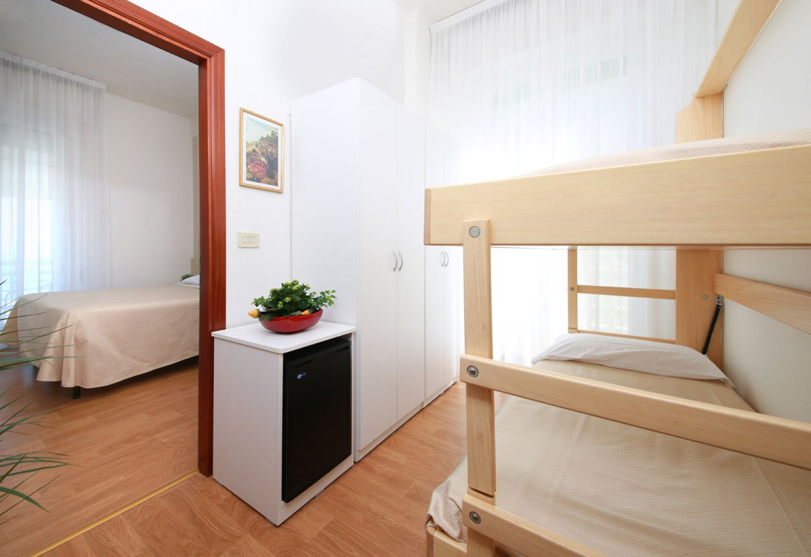 FamilyCamere quadruple, triple e comunicanti, ideali per famiglie fino a 5 persone. Possono misurare 14, 18 o 25 mq. Nella versione comunicante offrono 2 camere separate e 2 bagni, che facilitano la gestione degli spazi. Le quadruple nell’attico sono le più ampie e godono della vista mare più bella. |