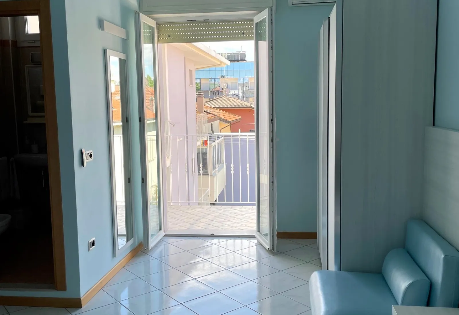 TriplaSpaziose e versatili, ideali per famiglie o per piccoli gruppi fino a 3 persone. Dall’arredamento moderno, offrono bagno privato con box doccia e phon, aria condizionata, Wi-Fi, cassaforte, TV-Sat, telefono, ventilatore e mini-frigo. Dispongono anche di un balcone privato. |